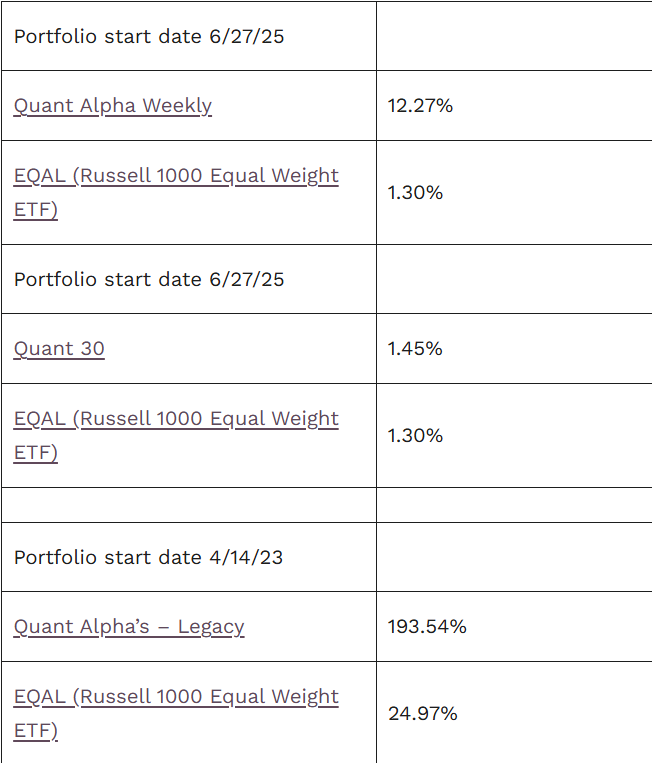 The Quant Alpha’s – Legacy Portfolio maintained its over 190% return.