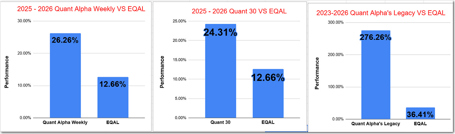 The Quant Alpha’s – Legacy Portfolio maintained its over 270% return since April 2023, in a classic Position Trading Portfolio implementation.