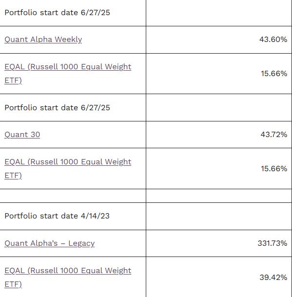 Quant Weekly – Up over 43% since June 2025