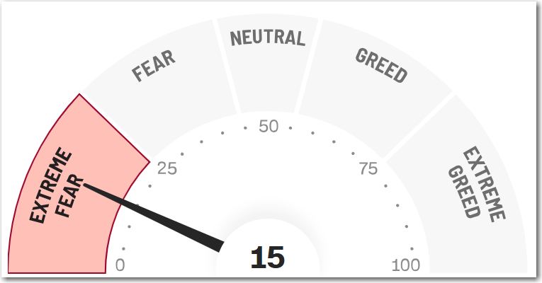The CNN Fear and Greed Index ends the week at Extreme Fear 15. This is the fourth week in row at the Extreme Fear level.