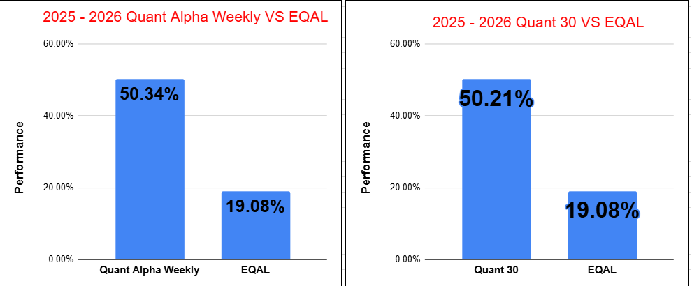 Update 4/20/26 - The Quant 30 and Quant Weekly Model Portfolios had a great week with all three Portfolios making all time highs! The Quant Weekly and Quant 30 are now up 50% from the 6/27/26 start
