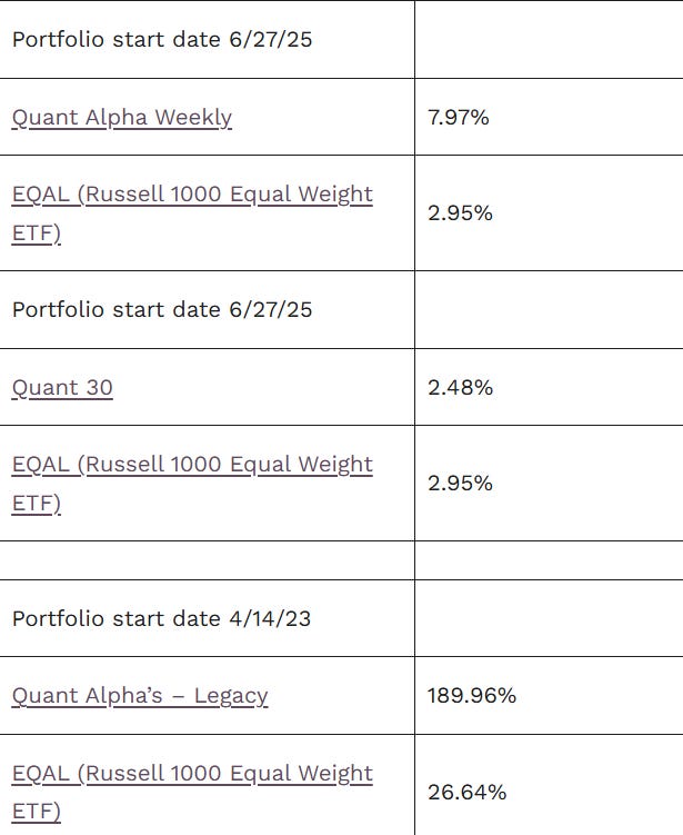 The Quant Alpha’s – Legacy Portfolio maintains its over 180% return.