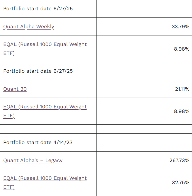 The Quant Alpha Weekly Portfolio remains ahead of its benchmark. Up over 33% since it began on June 27, 2025.