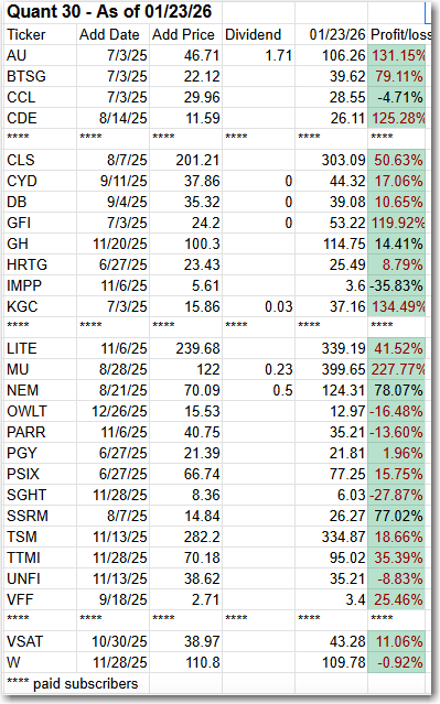 Quant Weekly and Quant 30 portfolios make new highs – Market fades – Update 01/26/26