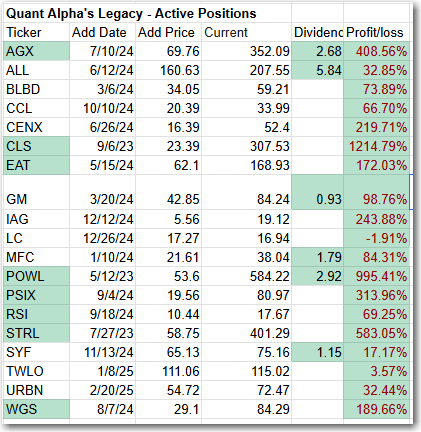 The Quant Alpha’s – Legacy Portfolio maintained its over 270% return since April 2023, in a classic Position Trading Portfolio implementation.