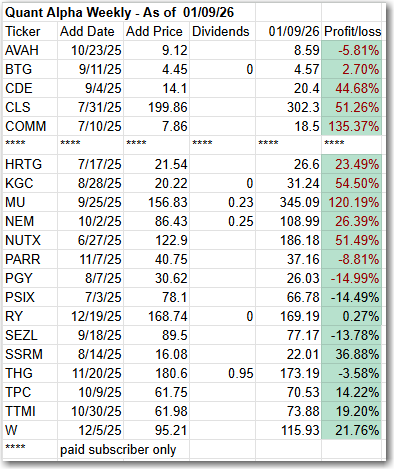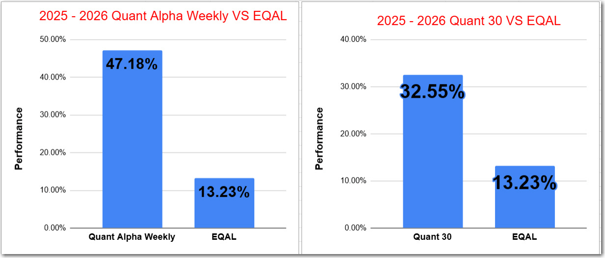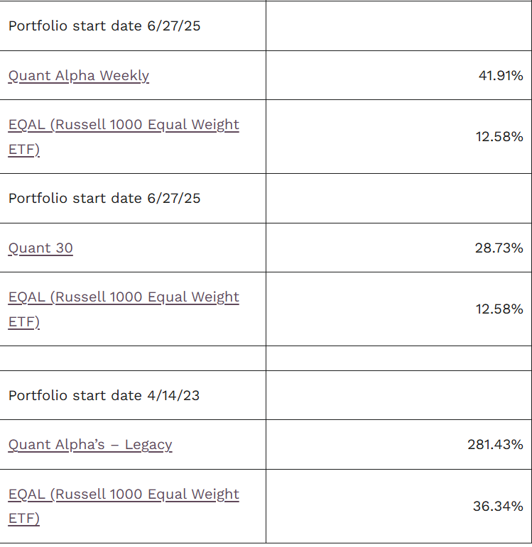 The Quant Alpha Weekly Portfolio remains ahead of its benchmark. Up over 41% since it began on June 27, 2025.